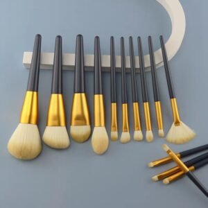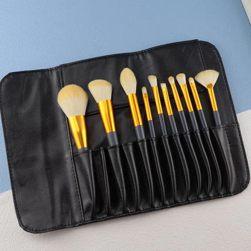 طقم 10فرش مكياج مع محفظة ، سهلة الحمل.