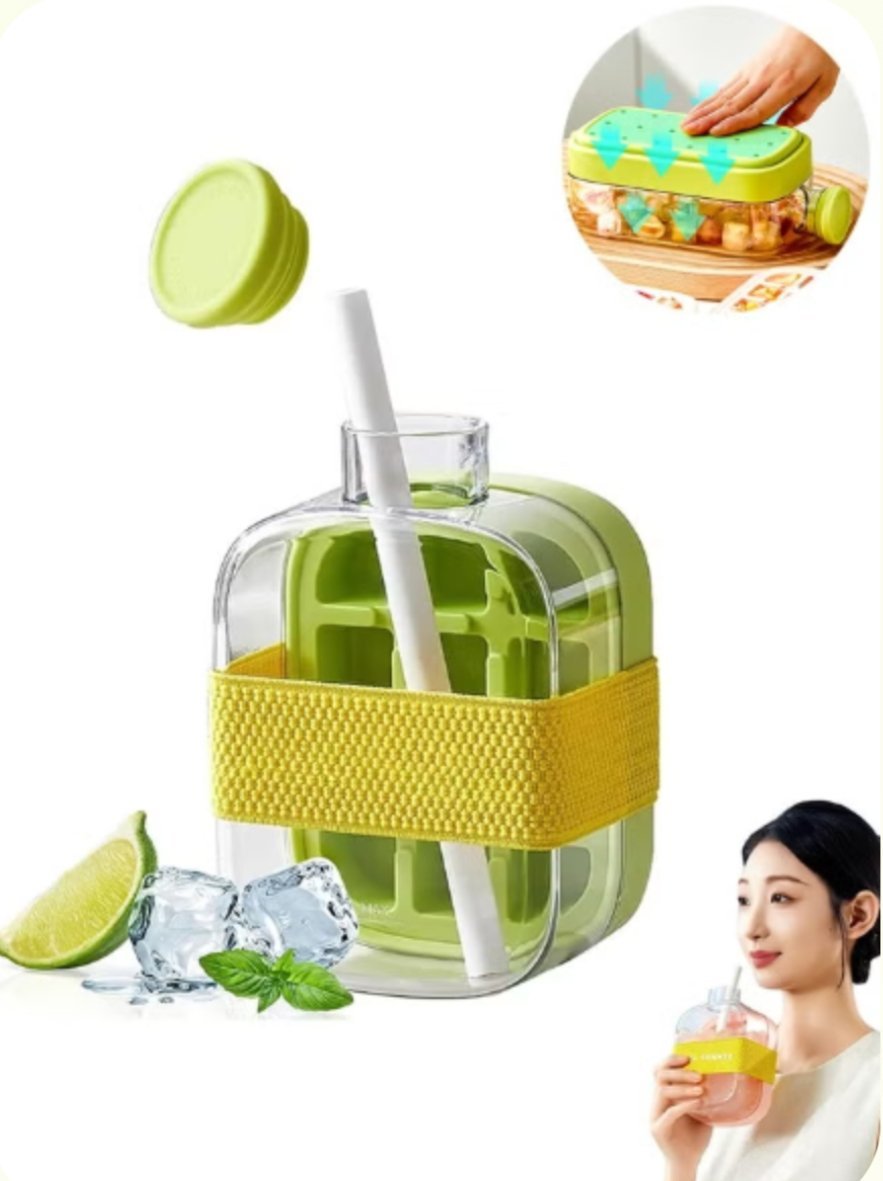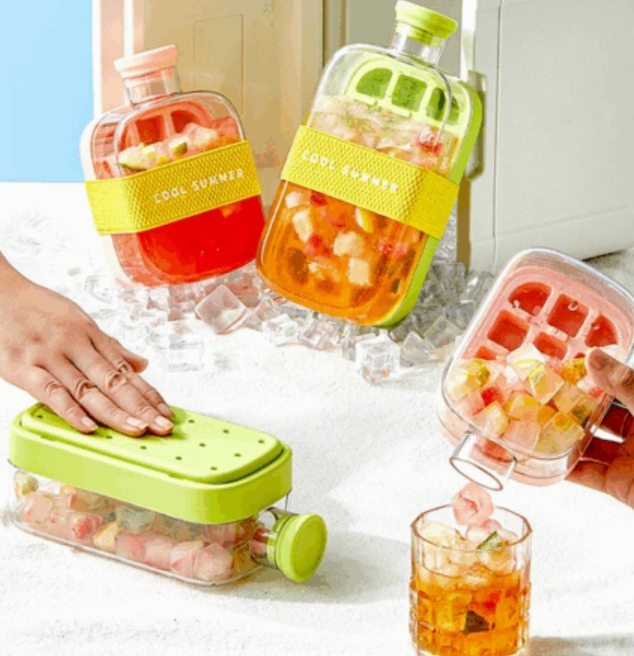 تصميم عملي وذكي: بتجمع بين صُنع التلج وتخزين المشروب في نفس الزجاجة – اضغطي تخرجي التلج، واسكبي مشروبك يشرب ساقع على طول
